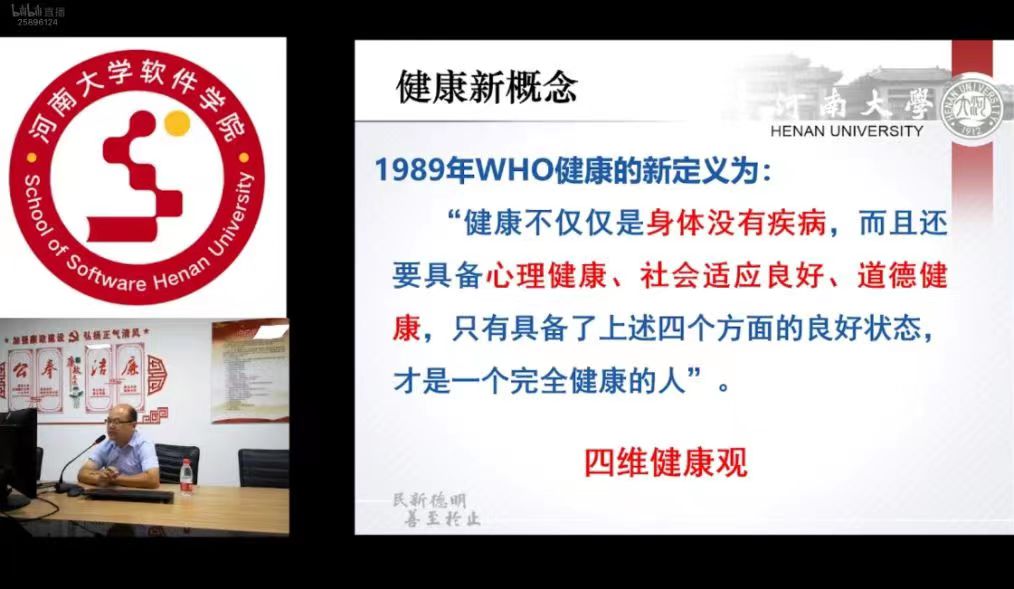 为深入做好疫情防控工作,在师生中进一步普及疫情防控知识和健康生活理念,9月3日上午,软件学院邀请校医院副院长张书申,以在线直播方式为全院师生作了题为《关注健康幸福人生》的专题讲座。讲座由学院副院长左方主持。
