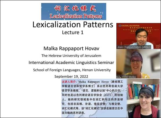 乐鱼(中国)第五届语言学术周暨“海外高端专家系列讲座”(100~109)在众多师生的期待下于9月19日成功拉开序幕,本活动将持续5天时间,每天两场高端讲座。为拓展广大师生的国际视野,营造良好的学术氛围,外语学院特邀请以色列希伯来大学语言学系教授Malka Rappaport Hovav和英国剑桥大学理论级应用语言学系教授Ian Roberts做系列讲座,他们的主题分别为“词汇化模式(Lexicalization Patterns)”和“普通语言学理论(General Linguistic Theories)”。此次系列讲座分别在Zoom平台和腾讯会议平台进行,有来自国内外知名高校480多位师生广泛关注并热情参与。讲座伊始,外语学院院长杨朝军教授致欢迎辞,并简要介绍了两位教授的教育经历、研究领域及学术成就,同时对他能在百忙之中抽时间为学院师生作线上报告表达了诚挚的感谢。