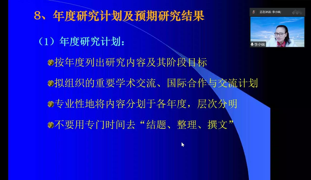 李小妹结合自己申报及参与评审国家自然科学基金项目的体会和感受,从国家自然科学基金项目申报准备、选题、申请书撰写、注意事项等多方面进行了详细分析与分享。她详细阐述了好的标书除了要突出创新性、可行性外,应该具有一定的研究基础、思维逻辑缜密、文字叙述简明扼要,比如:标点符号、错别字、版面布局等,往往这些细节也会影响课题的中标率。讲座结束后,李小妹还与老师们进行现场互动,有针对性地为现场老师答疑解惑。