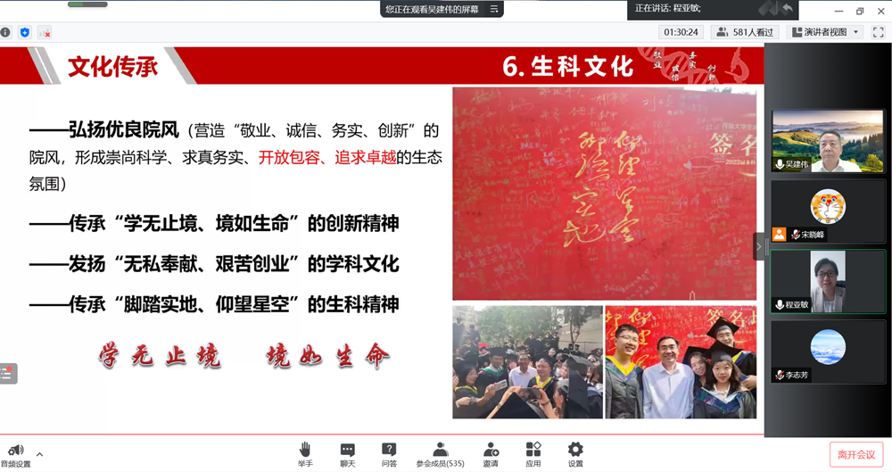 9月3日-14日,生命科学学院组织了32场专题报告会进行新生入学教育。此次入学教育系列报告会以“砥砺奋进,共创一流”为主题,围绕“无私奉献、艰苦创业、开放包容、追求卓越”主线,打造3个版块,聚焦12大专题,邀请28位专家学者和领导老师、16位优秀学长和校友等,采取线上方式,为学院2022级本科生、研究生以及棉花生物学国家重点实验室和省部共建作物逆境适应与改良国家重点实验室研究生近700人集中授课。