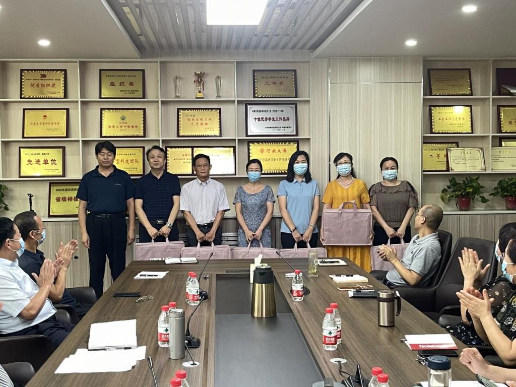 座谈会后,学院领导向从教满30年以上教师一一颁发纪念品并合影留念。